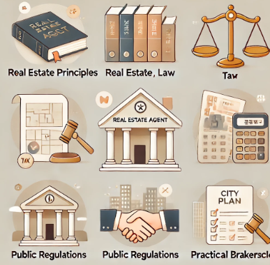 공인중개사법령 및 중개실무 : 공인중개사의 자격, 의무, 중개 절차 등을 중심으로 실무에 필요한 지식을 익히는 과목입니다.