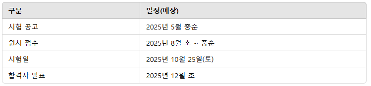 정확한 일정은 한국산업인력공단 큐넷(Q-Net) 홈페이지에서 반드시 확인해야 합니다.