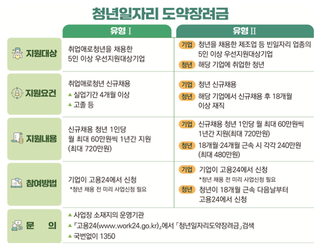 청년일자리도약장려금은 크게 두 가지 유형으로 나뉩니다.